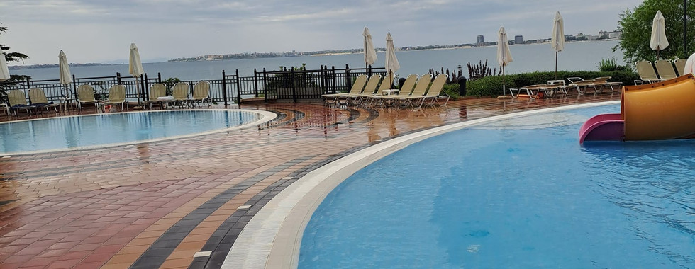 Mancarea buna, proaspata ,repetitiva dar aveai ce sa alegi. Restaurantele curate, aerisite. Lobby barul deschis 24/24 unde sunt servesc bauturi alcoolice (imbuteliate nu dozator cum am mai intalnit in alt complex), sucuri si cocktail-uri. In lobby exista deasemenea o cafenea (aici servesc espresso Lavazza ). Piscinele mari ofera poolbar (apa este putin cam rece dar daca bebe nu a racit inseamna ca suntem noi "sensibilosi") si zona pentru copii cu Aqua Park. Parcarea mare, pazita (20leva/zi ). Pentru cei ce nu vor sa viziteze imprejurimile cu masina personala, o statie de autobuz este chiar peste strada ,ofera curse catre Nessebar.